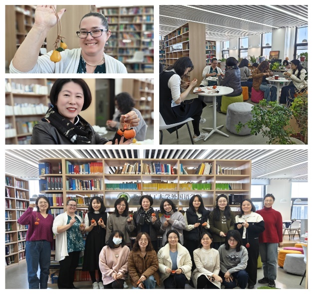 活动过程中,女教师们热情高涨,喻意着“柿柿如意”、“苹安喜乐”、“梨想成真”等小挂件在女教师们的巧手中制作出来。大家相互交流制作经验,分享制作成果,活动现场气氛欢乐和谐,成功营造了积极向上的节日氛围。