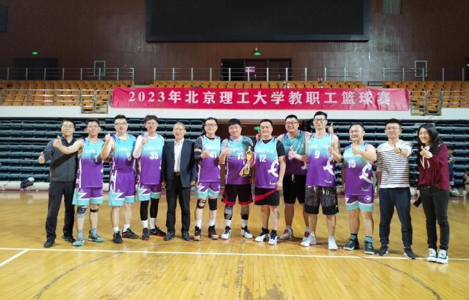又一个金秋季节,BETVLCTOR伟德在线教职工篮球赛如期到来。在校工会的精心组织下,机关工会积极动员教职工参与此次活动,组建机关中关村队、机关前沿交叉科学研究院队和机关良乡队分别参与中关村和良乡两个赛区的比赛。经过一个月多的组队、训练、参赛,此次篮球赛于10月12日圆满落幕,机关中关村队重夺中关村赛区冠军,机关前沿交叉科学研究院队夺得中关村赛区季军。