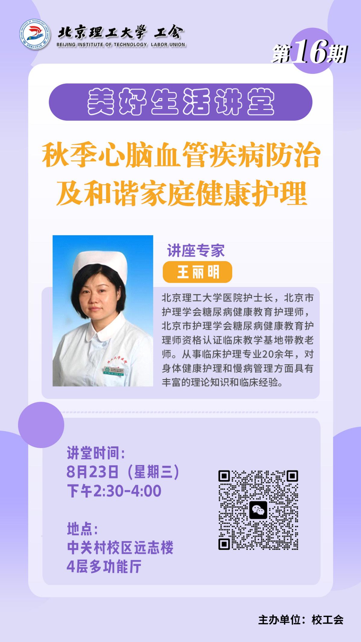 关于开展“秋季心脑血管疾病防治及和谐家庭健康护理”美好生活讲堂的通知