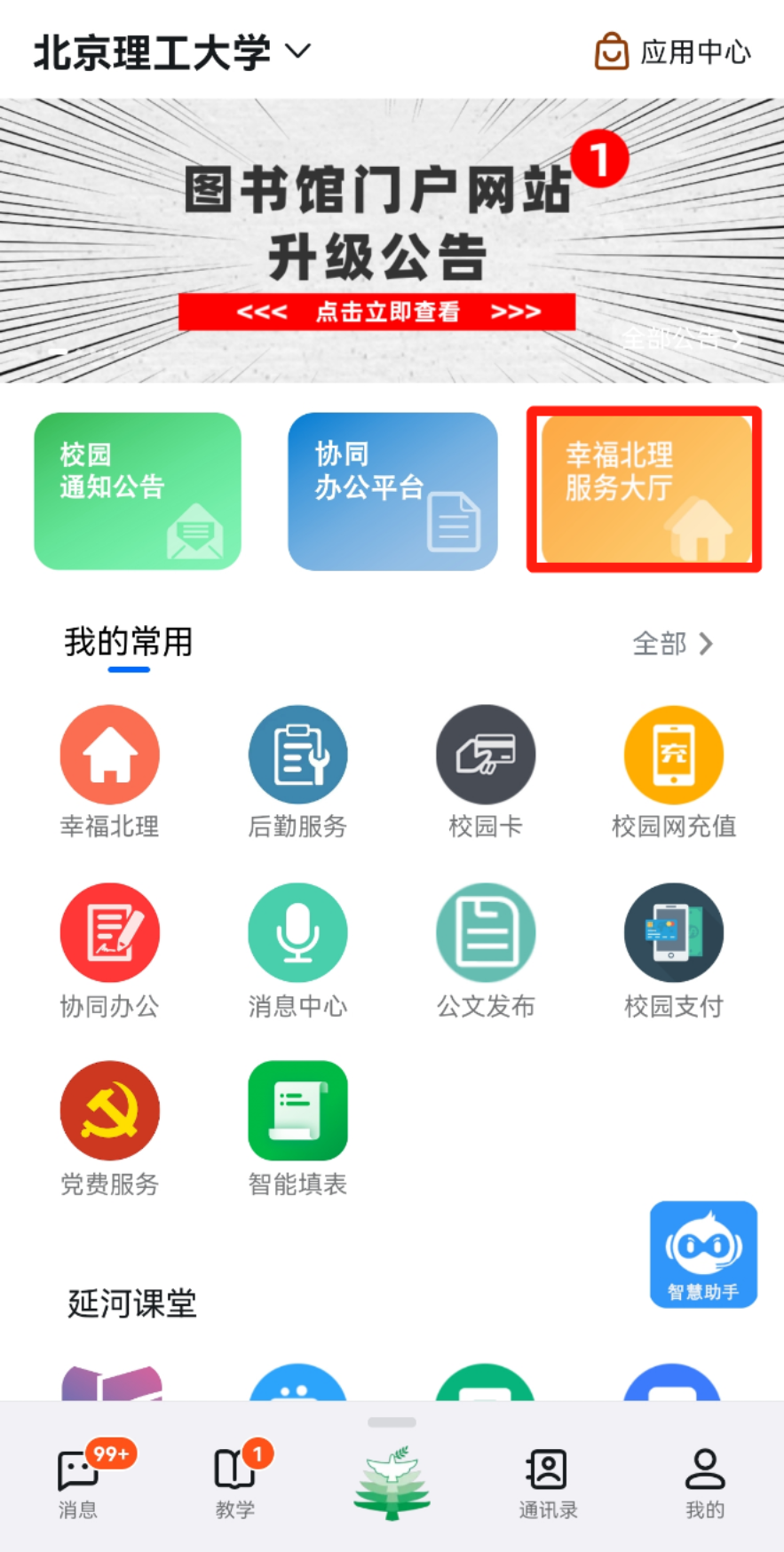 1.登录“智慧北理统一门户”,点击“幸福北理”。