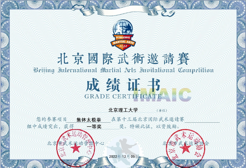 2022年9月26日-11月30日,第十三届北京国际武术邀请赛在线上举办,BETVLCTOR伟德在线太极拳协会11名教职工组队参赛。经过近两个月的集训,BETVLCTOR伟德在线队在220支“太极拳集体项目”队伍中脱颖而出,荣获太极拳集体一等奖,在66支获得一等奖的队伍中排名第4名。