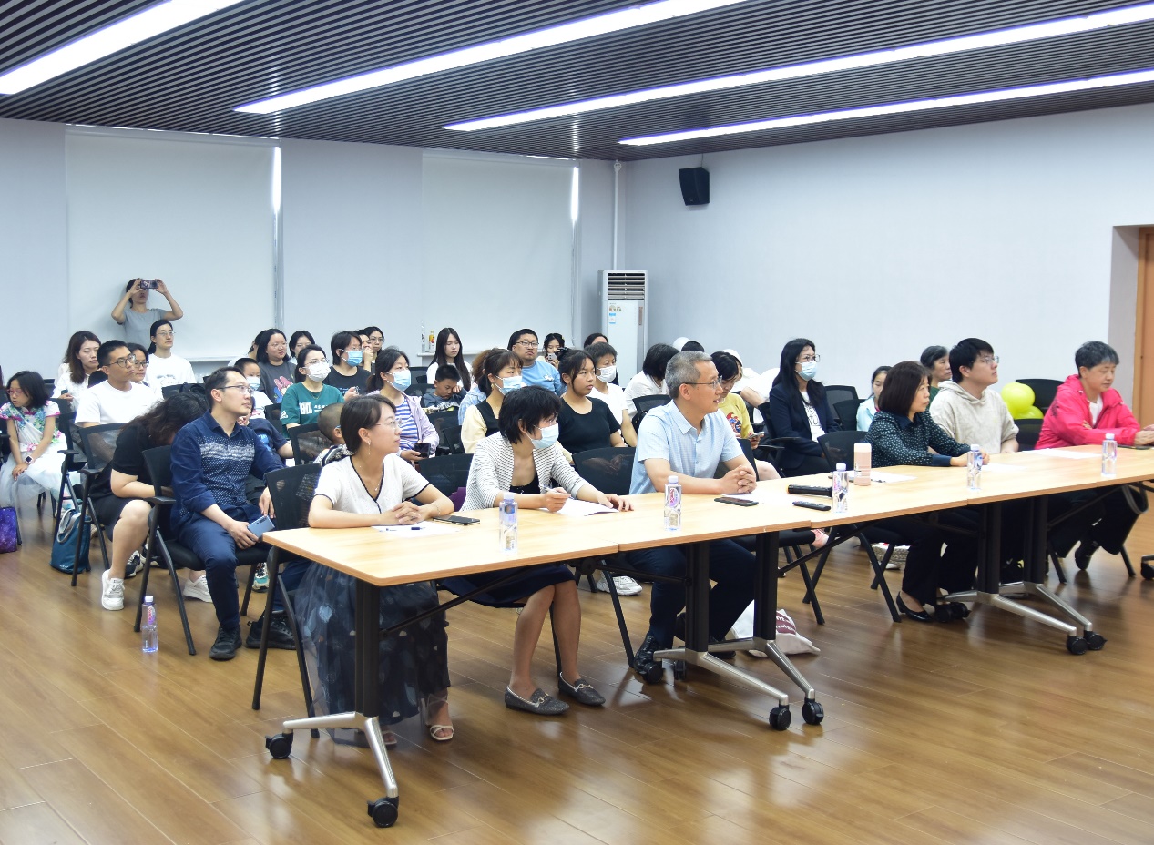 揭牌仪式结束后,贾晓明做“关心教职工子女成长 共同构建和谐家庭关系”美好生活讲堂,从父母与子女的关系、子女不同成长阶段的心理特点以及父母关心子女成长的原则和方法三个方面来展开。贾晓明指出,父母与子女之间的关系相互依赖、相互促进,父母是孩子的第一任老师,父母也要向孩子学习、与时俱进;同时,父母应该根据子女不同成长阶段的心理特点而采用适宜的教育方法。贾晓明与在座的家长和孩子展开了交流互动,回答了部分家长提出的疑惑,交流欢快而热烈。