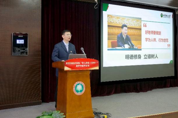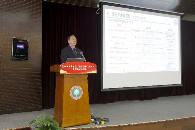 我校推荐的教书育人榜样候选人、北京市青年教学名师、青年长江学者武楠教授,进行现场汇报。学校党委副书记、副校长庞思平代表单位作事迹展示和推荐。